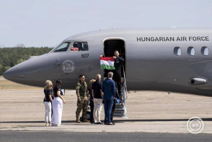 A kutatóűrhajós a Magyar Honvédség repülőgépével érkezett Budapestre, ahol a gépből kiszállva magyar zászlót lengetett. A repülőtéren Ferencz Orsolya űrkutatásért felelős kormánybiztos, Sztáray Péter, a Külgazdasági és Külügyminisztérium biztonságpolitikáért és energiabiztonságért felelős államtitkára, Cserényi Gyula tartalékos kutatóűrhajós és Farkas Bertalan, az első magyar űrhajós mellett családja, barátai is köszöntötték. Barátnő viszont nem várta és később sem árulta el, hogy milyen hölgy az ideálja.