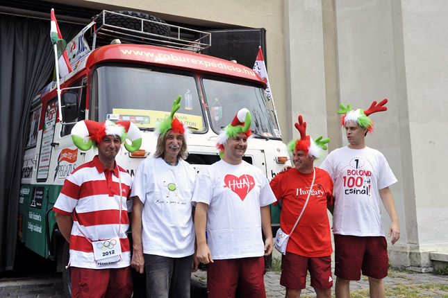 Az összesen kilenc Robur busz elemeiből összeállított, speciális igényeknek megfelelő járművel a csapat néhány tagja már megjárta az athéni és a pekingi olimpiát is. A brit fővárosba ma útra kelt expedíció tagjai észak-európai túrát téve érkeznek a július 27-i, pénteki megnyitó ünnepségre. A résztvevők: Balázs Ottó, Jármi Zsolt, Bánlaki Tasnád, Bujdosó Attila és Waszlavik Gazember László, aki egy erdélyi koncertkorút miatt félidőben hazarepül.