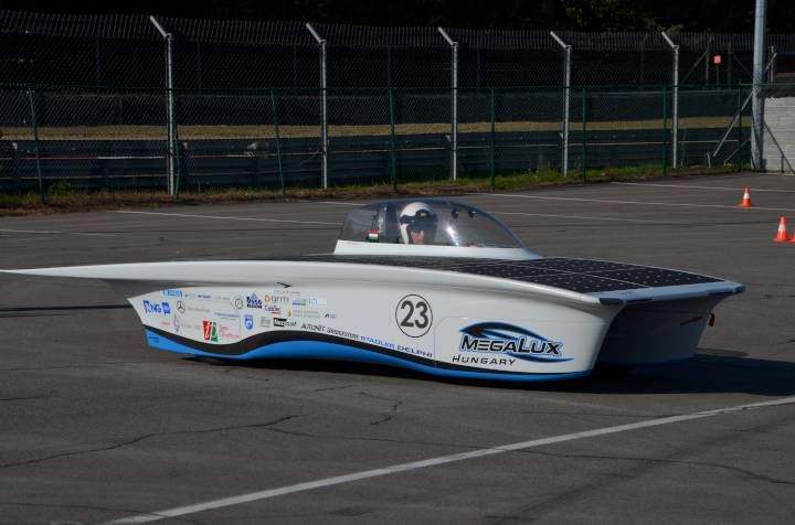 A kecskeméti Neumann János Egyetem GAMF Műszaki és Informatikai karának csapata által tervezett MegaLux már korábban is óriási sikert ért el az ausztráliai World Solar Challenge és a dél-afrikai Sasol Solar Challenge országúti versenyen, ahol szintén harmadik helyen végeztek. A fiatal mérnökök azóta továbbfejlesztették a szuper-autót, aminek eredményeként a kocsi új futóművet és felfüggesztést kapott annak érdekében, hogy versenypályákon is nagy sebességgel tudjon kanyarodni. Az autó további paraméterei változatlanok maradtak, ugyanúgy hat négyzetméternyi napelem gyűjti az energiát, amelyet egy 20 kg súlyú lítiumion akkumulátor tárol. Ezekre az erőforrásokra most nagy szükség is volt, hiszen a verseny végig esőben zajlott.