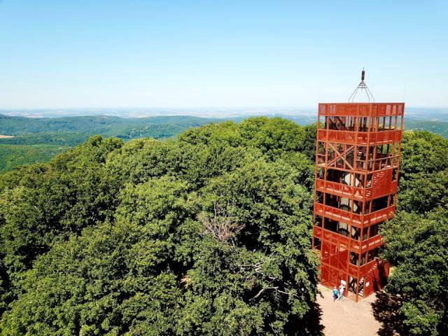 A hegytetőn 162,9 millió forint vissza nem térítendő európai uniós támogatásból nemrég készült el a vadonatúj, toronyház-magasságú kilátó. Tetejéről tiszta időben a Balatonig és a Papuk-hegységig ellátni. A csodálatos panoráma ráadásul egy rövid, ámbár meredek sétával bárkinek elérhető.