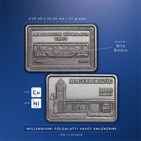 A Magyar Nemzeti Bank a Millenniumi Földalatti Vasút megnyitásának 125. évfordulója alkalmából 2000 forint névértékű színesfém emlékérmét bocsát ki 2021. május 3-án. A különleges emlékérmét a Magyar Műszaki és Közlekedési Múzeum szakmai közreműködésével Bitó Balázs iparművész tervezte – tudatták sajtósaik.