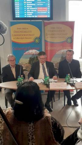 A sajtómunkásokat Mosóczi László, a MÁV-START vezérigazgatója és Mező Tibor, a Kárpát-Európa Utazási Iroda ügyvezetője tájékoztatta Vadkerti László, a Kárpát-Európa Utazási Iroda irodavezetője moderálásával. Az asztalnál ülő Petrus György, a Kárpát-Európa Utazási Iroda cégvezetője nem szólalt fel, de interjút szívesen adott. Eperjes Károly Kossuth-díjas színművész, a Hallhatatlanok Társulatának örökös tagja most nem lesz a vonatok vendége, de Böjte Csaba Ernő tusnádfürdői alpolgármesterrel, a csíki szállásadók képviselőjével egy-egy kétperces videóval jelentkezett. Frigyesy Ágnes Szalézi Szent Ferenc-díjas újságíró, fotóriporter, a Budapesti Székely Kör elnöke a vonatokon 9. éve zajló adománygyűjtésre hívta vel a figyelmet. Dévai-Nagy Kamilla Liszt Ferenc-díjas érdemes művész, a vonatok vendége a 40 perces sajtóesemény elején és végén szívhez szólón énekelt és gitározott.