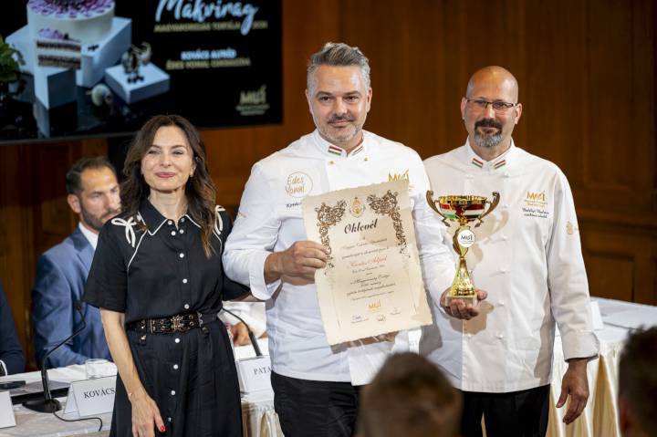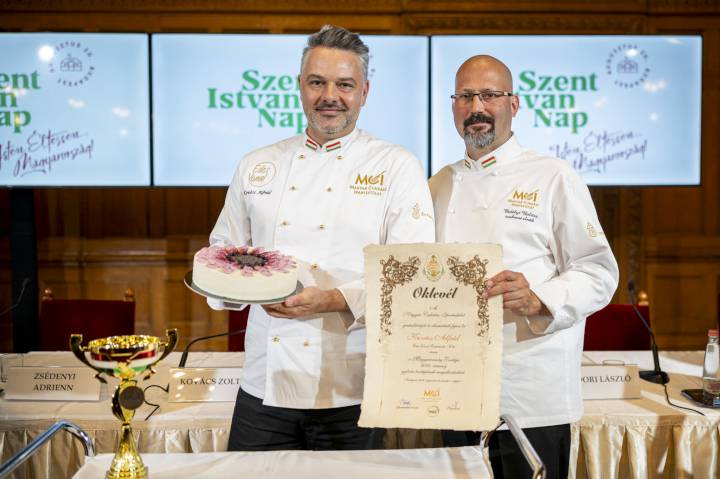 Kovács Alfréd váci cukrász: Mákvirág fantázianevű tortája viselheti idén a Magyarország Tortája címet. A Magyarország Cukormentes Tortája versenyt Novák Ádám és Csonka László szegedi cukrászok: Zöld málna fantázianevű kreációja nyerte el. A délelőtti vadászteremi sajtótájékoztatóról idekattintva olvashatunk.