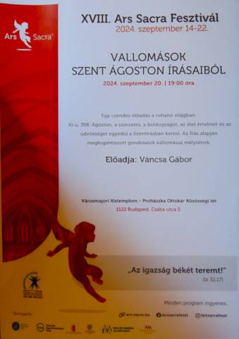 Az igazság békét teremt mottó szellemében hirdették meg a szeptember 14-22-e között zajló XVIII. Ars Sacra Fesztivál programját. A sajtótájékoztató 11 órakor kezdődött a Prohászka Ottokár Közösségi Házban, a városmajori kistemplomban. A közel 400 programot felsorakoztató fesztivál fővédnökei: Nagy Zsuzsanna asszony, államfőnk felesége és Erdő Péter bíboros, prímás.