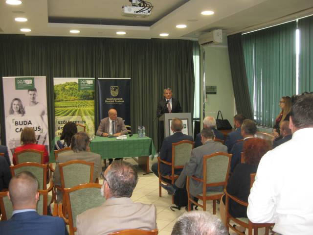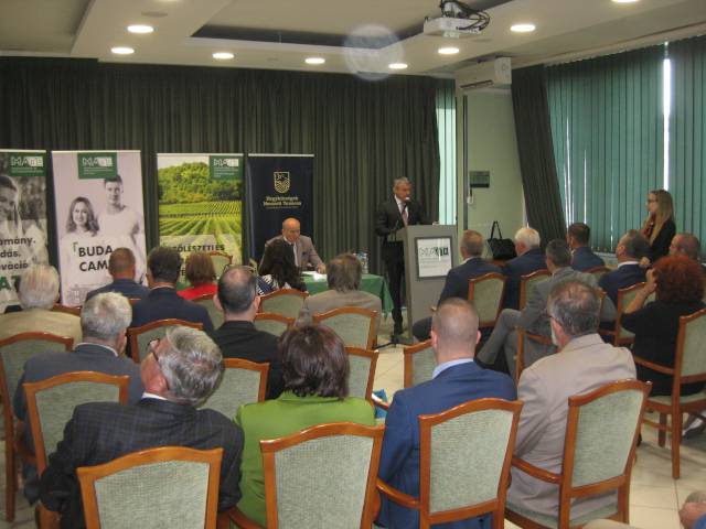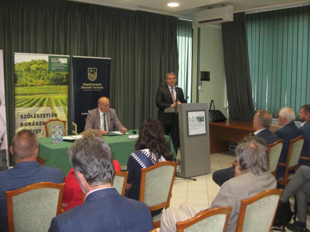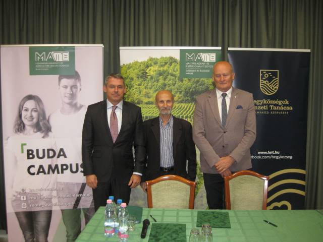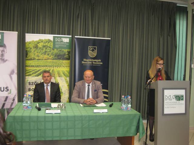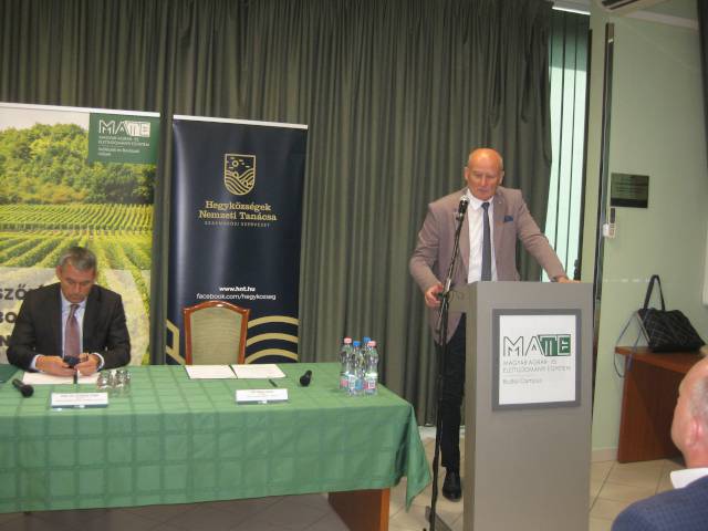Prof. dr. Gyuricza Csaba, a MATE rektora köszöntő beszédében kiemelte, hogy az Egyetem stratégiai megállapodás köt a HNT-vel, amit azért fontos hangsúlyozni, mert a MATE több szinten köt együttműködéseket különböző szervezetekkel, de a legmagasabb szint ezek között a stratégiai megállapodás, melyet minden esetben csak az adott ágazat legmeghatározóbb szereplőjével, így ebben az esetben a Hegyközségek Nemzeti Tanácsával köt.