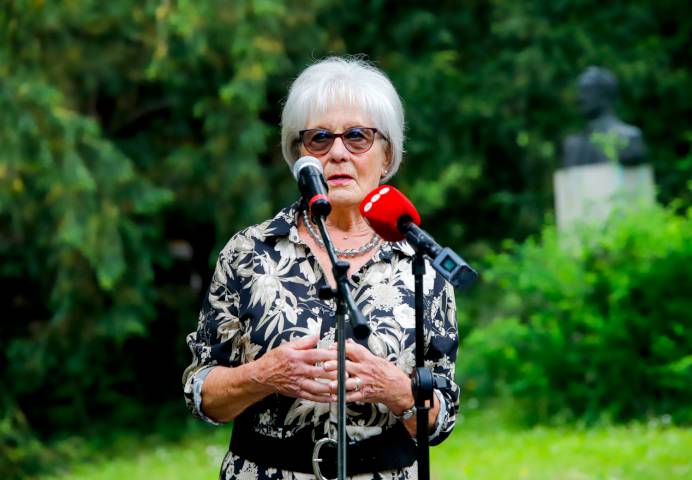 Most ahogy így körbe nézek be kell vallanom, csordultig van a szívem. Hirtelen megjelent az ő arca, mosolyogva, boldogan, ugyanúgy, mint ahogyan ez a szobron is látható. Ezúton szeretném megköszönni mindazoknak, akik munkával, cselekedettel és kigondolással létrehozták és megteremtették a lehetőséget, hogy itt, az Egyetem parkjában kapjon helyet a szobra! – emlékezett meg Récsey Antónia néhai férjéről azután, hogy Nyitrainé dr. Sárdy Diána főigazgató asszonnyal együtt felavatták Bálint Gazda mellszobrát.