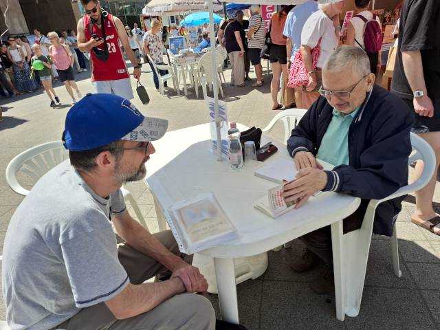 Szarvas István író, újságíró: Olimpikonok válaszoltak és Kérdeztem – válaszoltak VIII. című riportköteteit dedikálta ma 16 órától a Vörösmarty téren, a SpringMed Kiadó 39. pavilonja előtt.