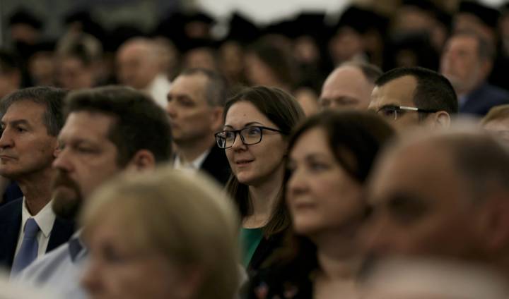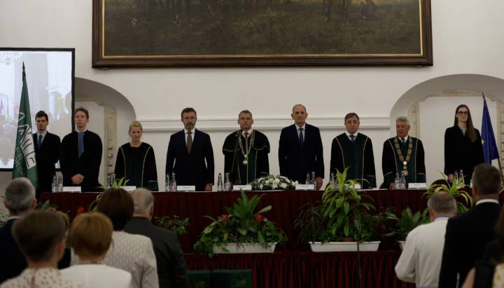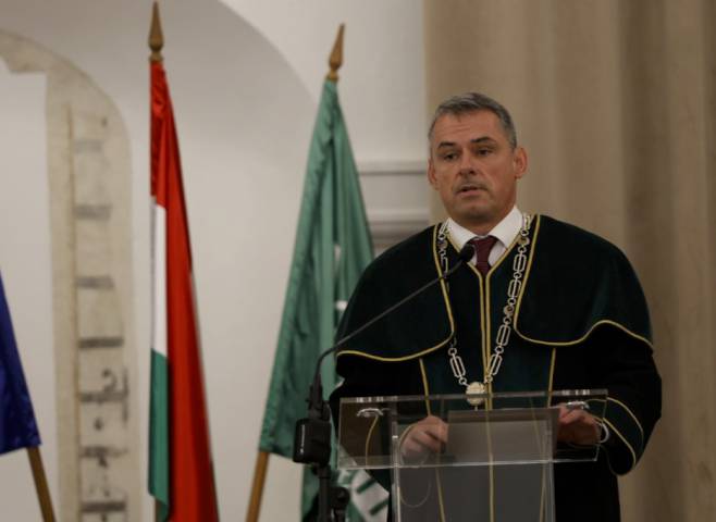 – Ma itt, a Gödöllői Királyi Kastély patinás lovardájában nemcsak egy tanévet zárunk le. Ma visszatekintünk, számot vetünk, ünneplünk, és ha jól figyelünk, talán egy pillanatra megláthatjuk azt is, ami előttünk áll! – fogalmazott dr. Gyuricza Csaba hozzátéve: A szakirányú továbbképzésekre közel 400 jelentkezés érkezett. Az általános felvételin több mint 3200 gólyát köszönthettünk, ami 25%-os növekedést jelent két év alatt. A doktori képzéseinkre 137 pályázat érkezett, ez 22%-os bővülés. Ezek nem véletlenek. Ezek azt jelzik, hogy a fiatalok hisznek bennünk. De a MATE nemcsak számokkal lépett előre, létesítmények, szabadalmak, eszközök területén is folyamatosan fejlődünk. Hisszük, hogy ahol a kapukat felújítják, ott a tudás is tágabbra nyitja a lehetőségeket. Campusainkon az elmúlt évben több mint tízmilliárdos nagyságrendben indultak fejlesztések: megújult laborok, digitális oktatási eszközpark, kollégiumi beruházások, tangazdaság, sportcsarnok. Ezek mind-mind azt a célt szolgálják országszerte, hogy a MATE falai között korszerű, használható, versenyképes tudás szülessen – hangsúlyozta az intézmény vezetője.