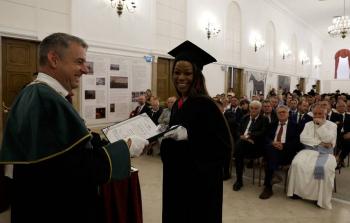 A hagyományoknak megfelelően idén is a tanévzáró adott otthont a MATE doktori képzéseit sikeresen teljesítő doktoranduszok felavatásának. A doktorjelöltek – Vitális Flóra magyar és Mehrzad Abdikhalife angol nyelvű előmondása mellett – tettek fogadalmat arról, hogy felkészültségüket az igazság szolgálatára, a tudományok fejlesztésére, az egyetem tisztességére, embertársaik és hazájuk javára fordítják majd. – Isten engem úgy segítsen! – fejezték be esküjüket. A doktoranduszokat dr. Gyuricza Csaba rektor és dr. Helyes Lajos, a MATE Egyetemi Doktori és Habilitációs Tanácsának elnöke fogadták doktorrá. A 2024/2025. évi tanévben 153 doktorandusz hallgató szerzett eddig PhD fokozatot.