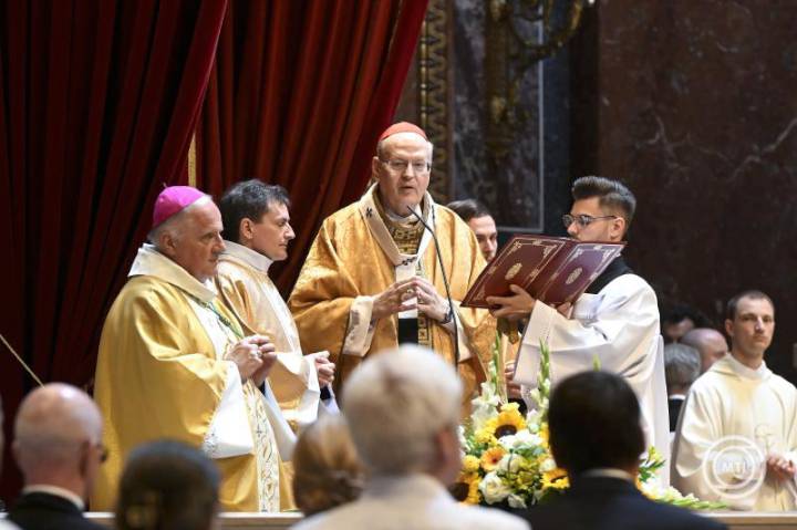 Erdő Péter életútját felidézve kitért arra: Péter születésekor ott volt mellette ikertestvére, Pál is, és ez a kettős kezdet mintha már előre jelezte volna, hogy papi szolgálatában Péter és Pál apostolok attitűdje összekapcsolódik. Ahogy Péter a kőszikla és Pál, a pogányok nagy térítője kiegészítették egymást az egyház építésében, úgy Erdő Péter életében mindig fellelhető az egyházvezetői habitus, a szikla mellett egyfajta páli attitűd: a törvény és a tanítás mély szeretetén alapuló, rendszerező és az evangéliumot széles körben terjesztő lelkiség. Amikor Erdő Pétert 1952-ben megkeresztelték, Mindszenty József már börtönben volt, amikor pedig 1970-ben jelentkezett a szemináriumba, a bíboros-prímás már az amerikai nagykövetségen tartózkodott. Nem gondolhatta tehát, hogy papként majd jó dolga lesz. Világos volt számára, hogy egy nagyon nehéz, adott esetben kockázatos hivatásra mondott igent a kezdeti kegyelem által.