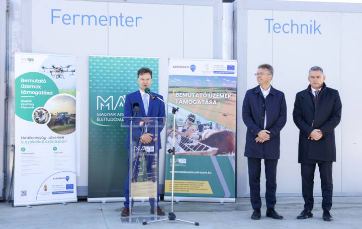 A Magyar Agrár- és Élettudományi Egyetem a MATE 2030 stratégia megalkotásával célként tűzte ki többek között a zöld jövő további építését, mely cél elérésében kulcsfontosságú szerepet játszik a moduláris biogázüzem átadása Gödöllő-Szárítópusztán, a Kertészeti Tanüzem területén. A Magyar Agrár- és Élettudományi Egyetem rektora az átadó kapcsán hangsúlyozta, hogy a biogázüzem nemcsak egy létesítmény számunkra, hanem egy új gondolkodásmód szimbóluma is. Rendkívül sok fejlesztés zajlik az Egyetemen, de vannak kiemelt területek ezen belül is, mégpedig az oktatást, a gyakorlati képzést és a kutatást közvetlenül szolgáló beruházások köre. A biogázüzem átadása ebbe a komplex rendszerbe illeszkedik, hiszen segítségével nem képződik hulladék, csak melléktermék. A melléktermékből komposztot, áramot és hőenergiát állítunk elő, utóbbi például az itteni növényházat is fűti. A biohulladék-körforgási telephely létrehozásával azonban nemcsak energiaforrásról beszélünk, hanem tudásforrásról is, hiszen gyakorlati bemutatóteret biztosítunk hallgatóinknak és a szakembereknek egyaránt. Ez a több mint egymilliárd forint értékű beruházás remek példája annak, hogy a gyakorlatba fektetve is megvalósítottuk azt, amit elméleti szinten oktatunk és kutatunk, ráadásul egyedülállóan nemcsak Európában, hanem az egész világon – emelte ki Gyuricza Csaba.