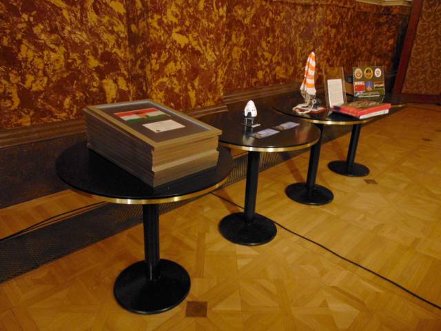 Mint ma reggel előre jeleztük, az űrben járt magyar lobogókat 15 órától 10 civilnek, illetve szervezetnek adták át a Magyar Nemzeti Múzeum Dísztermében. Fotóink Egressy Rita felvételei.