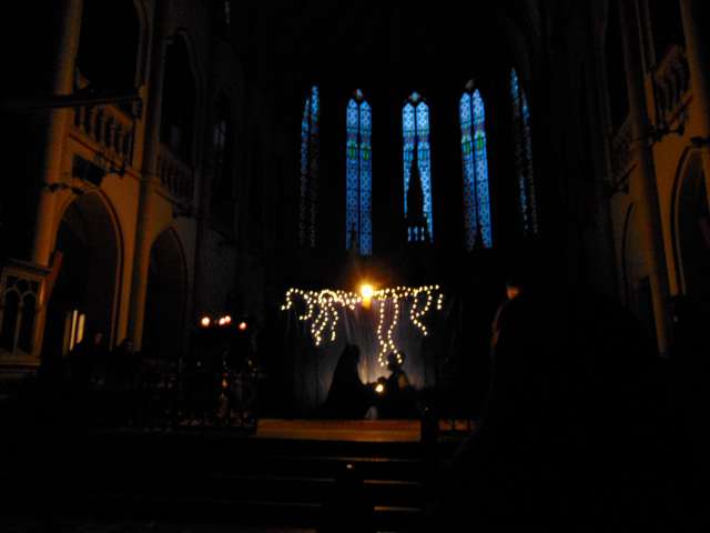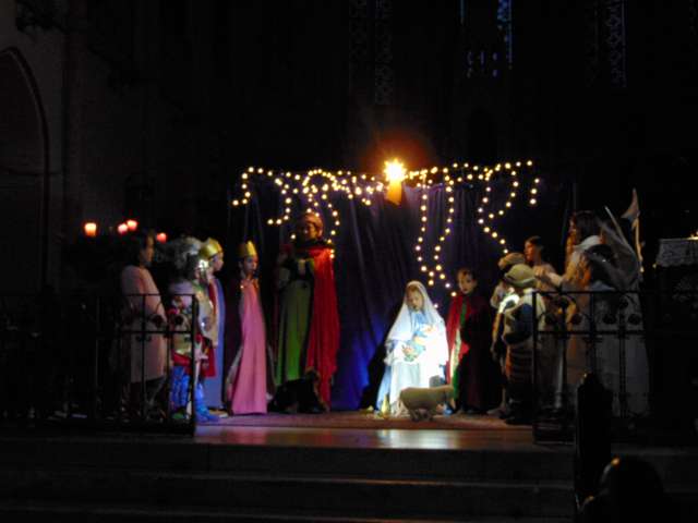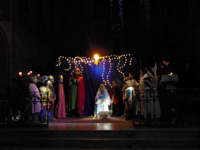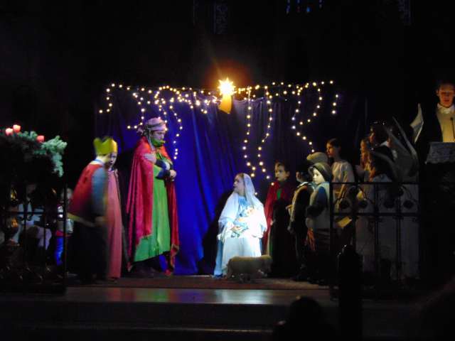 A félórás produkcióra a fiatalok hetek óta készültek, s remek előadást alkottak. Távozásunk után a templomot bezárták, hogy csak az éjféli szentmise előtt félórával nyissák ki legközelebb. Ott lesz a helyünk!