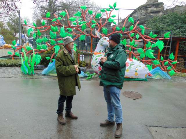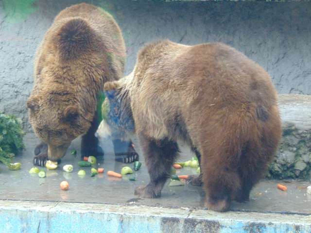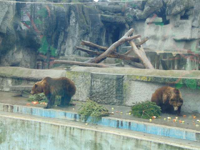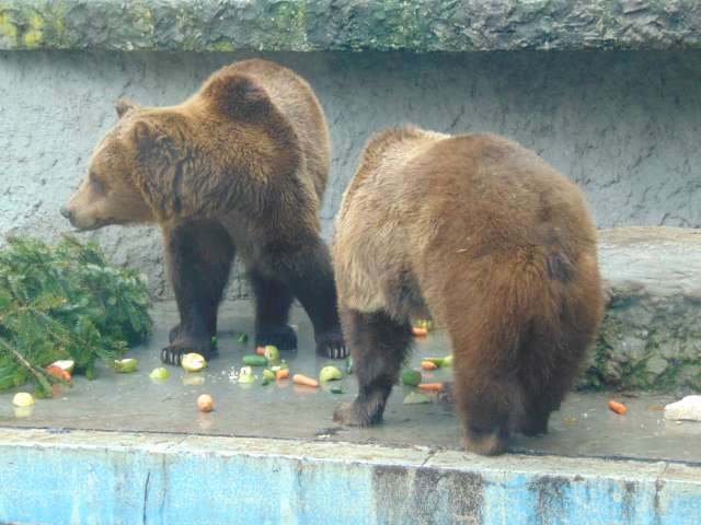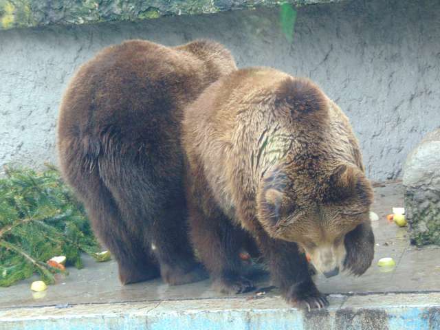 Ma 11 órakor a Fővárosi Állat- és Növénykertben mi is a medvebarlangnál várakoztunk, Egressy Rita szorgalmasan fotózott. Kijött Hargita és Csángó, a szitáló hóesésben a barnamedvepár játszott az odakészített ajándékokkal. Borult volt az ég, nem látták meg a saját árnyékukat, ezért kinn maradtak. Nem mentek bele a hideg medencébe – melyet a pár éve vidékre költöztetett jegesmedvék használtak előttük -, csak a beguruló almákat igyekeztek kihalászni onnan. Joggal reméljük hát, hogy nem tart soká a tél!
