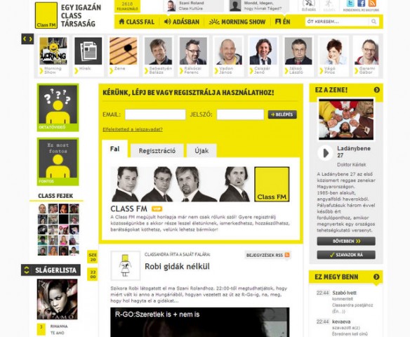 A közösségi oldalak mostanában nagyon pörögnek és bonyolultságuk ellenére is rendkívül népszerűek. Ezen felbuzdulva gondoltunk egy nagyot a Class FM-mel: mi lenne, ha a rádiónak készítenénk saját közösségi oldalt? A felkérésre örömmel mondtam igent, így született meg a Classfm.hu, ahol minden látogatónak saját fala van. Képeket tölthet fel, ismerősnek jelölhet másokat, kommentelhet, megoszthat más oldalon talált érdekes tartalmakat. Emellett pedig több információs fal áll rendelkezésére, ilyen például a zenefal. Az oldal látogatója minden információt megtalál az éppen hallható dalról, sőt még szavazhat is rá ? tette hozzá a szakember.