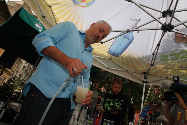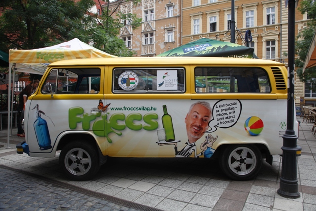 Begyújtotta a motort a Fröccsbusz. Ha nyár, akkor fröccs, ha fröccs, akkor Fröccsbusz, azaz indul az Agrármarketing Centrum (AMC) idei fröccskampánya ? tudtuk meg délutáni partijukon, ahol még nem is hallottak a VV Laci komáromi éttermében látott fröccsöntő-gépről.