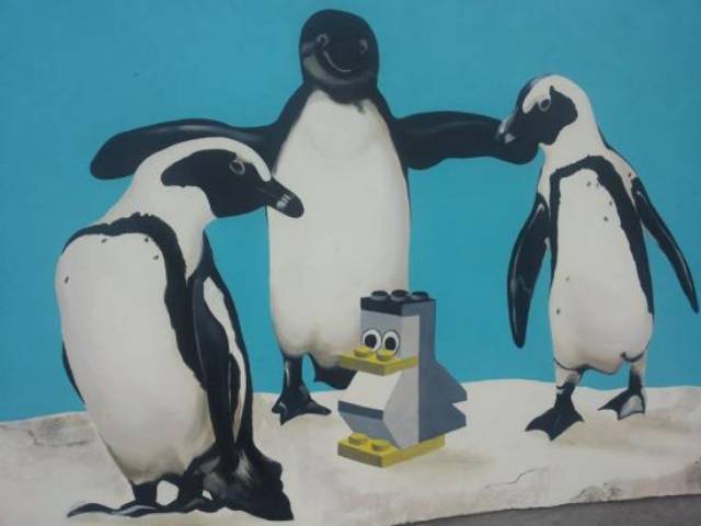 Pingvinek, gorillák, lajhárok és vízilovak képe díszíti a betonkerítést, amely a napokban újult meg egy közösségi kezdeményezés keretében. A csaknem 60 négyzetméternyi falszakasz négy része igazi és játék állatokat ábrázol: a pingvincsapat között például feltűnik egy játék pingvin, vagy a fáról lecsüngő lajhár mellett annak plüss mása látható. Hanga Zoltán, a FÁNK szóvivője a fal délelőtti átadóján hangsúlyozta: az intézmény mindig fontosnak tartotta, hogy a művészet ne csak a falakon belül, hanem a falakon is megjelenjen. Példaként említette a Városliget felé eső, 1911-ben készült kovácsoltvas kerítést, amelyet szintén megannyi állat képe díszít. ? A támfalon szerettünk volna a művészet eszközeivel utalni arra, hogy mi van a falakon túl ? hangsúlyozta a szóvivő hozzátéve, hogy az intézmény ezért üdvözölte a festést végző Let’s Colour Településszépítő Egyesület megkeresését, amely közösségi programja részeként szépítette meg a már erősen leromlott állapotú falat, amelyet 2007 óta állatok képe díszített.