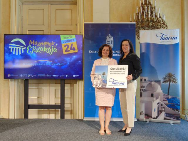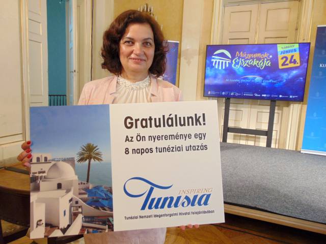 Demeter Szilárd, a PIM főigazgatója a Városligeti fasori Iparkodj! kiállításmegnyitóról érkezett és a saját mai programjaikat ismertette. Utána Cseke Judit, a PIM sajtósa, az esemény moderátoraként színpadra hívta Keczán Erikát, aki egy nyolcnapos tunéziai utazást nyert egy nyolcnapos, nyolckérdéses internetes vetélkedőn a Tunéziai Nemzeti Idegenforgalmi Hivatal felajánlásából.