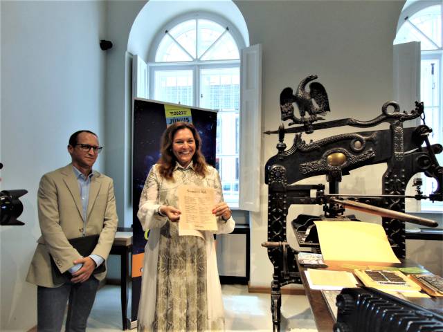 Az I. emeleti megnyitóról a földszintre vonultunk, ahol a XIX. századi Columbia nyomdagépen elkészült Petőfi Sándor: Nemzeti dala. A nyomdászmester elmondta, hogy a papír tökéletes száradásához két nap kell, egyébként elkenődik a festék. Kérdésemre hozzátette, hogy a gépnek két testvére van, egyik az óbudai Kiscelli Múzeumban. Tőlük a 2018. március 12-ei kiállítás megnyitóján én is kaptam egy frissen nyomott példányt.