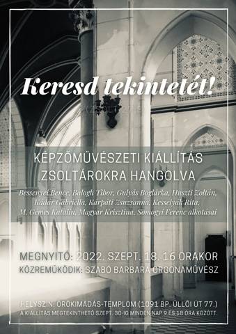 Az Ars Sacra Fesztivál keretében 16 órakor Keresd tekintetét! című keresztény képzőművészeti kiállítás nyílt zsoltárokra hangolódva az Üllői úti Örökimádás templom karzatán. Közreműködött Szabó Barbara orgonaművész.