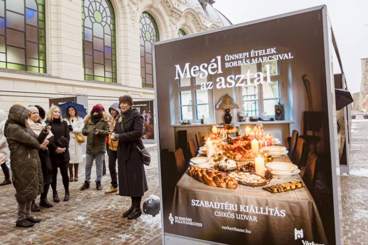 Mesél az asztal: ünnepi ételek Borbás Marcsival. Idén a Budavári Palotanegyedben újjászületett Csikós udvar ad otthont adventi szabadtéri kiállításnak. Borbás Marcsi ünnepi fogásait és a Kárpát-medence magyarságának hagyományos karácsonyi ételeit a hozzájuk kapcsolódó népszokásokkal január végéig lehet megtekinteni.