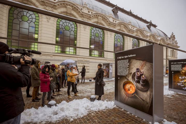 A tárlat során 18 darab szabadon álló, kivilágított installációban összesen 36 tablófelületen keresztül mutatjuk be az adventi gasztronómia ételeit. Karácsonyi tárlatunkhoz kísérő program is kapcsolódik: december 9-én szombaton és 12-én kedden Borbás Marcsi személyes tárlatvezetést tart, kóstolóval egybekötve. Borbás Marcsi vendége lesz a december 12-i Várkert Irodalom Aposztróf – Angyal zenéje, gyertyafény című estnek is Juhász Anna irodalmár beszélgetőtársaként a Várkert Bazárban – hallottuk a Főőrség épületében a délelőtti sajtókóstolón. Fotóink a Várkapitányság felvételei.