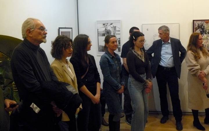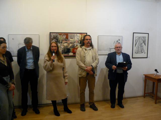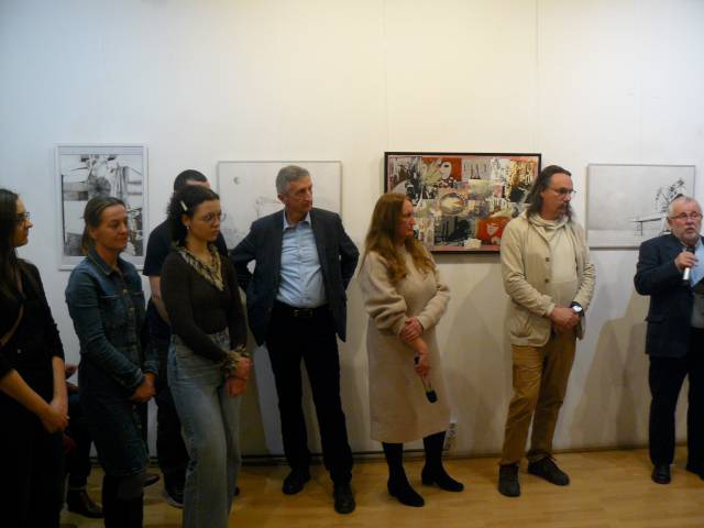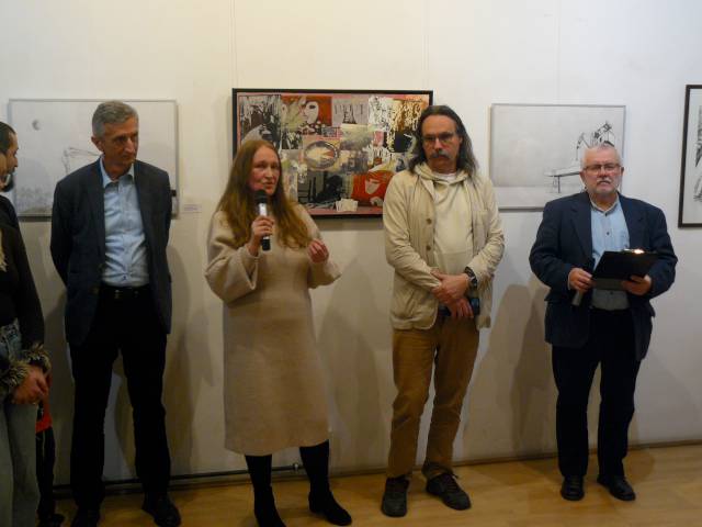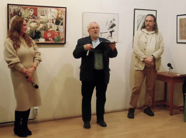 László Dániel 47 éves festőművész, a Bartók1 Galéria vezérigazgatója bevezetője után Fricska Éva, a gyarmati Artéria Galéria vezetője vette át a szót. Megtudtuk, hogy ez a tárlat a balassagyarmati grafikai kiállítás teljes anyaga, ami a Bartók1 Galéria nagyobb kiállítótere miatt egy pár nagyobb méretű alkotással bővült. A kiállító művészek között a három Mester: Szabó Vladimir (1905-1991), Farkas András (1920-1991) és Jánossy Ferenc (1926-1983) még a XX. században elhunyt, a 24 élő viszont mind megérkezett, a fiatal főiskolai-, egyetemista grafika-szakos hallgatótól a 80. életéve felé közeledő érett művészig.
