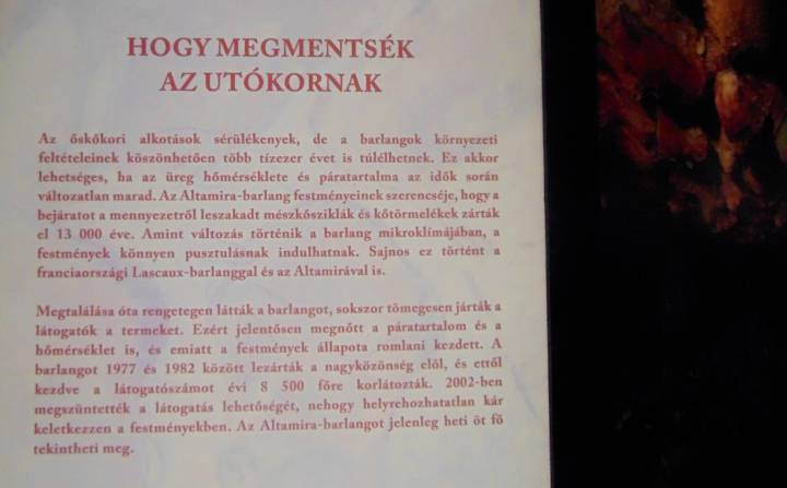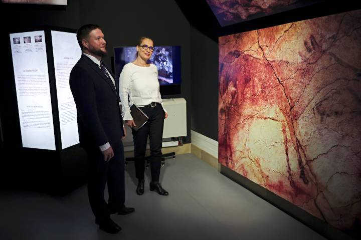 Pilar Fatás Monforte, az Altamira Nemzeti Múzeum és Kutatóközpont igazgatónője kiemelte, hogy a barlang a világörökség része, az UNESCO 1985-ben vette fel a világörökségi listára. 2001-ben nyílt meg a barlang hasonmás változata, az Altamira Múzeum. Az első falképek 35 ezer, az utolsók 13 ezer évvel ezelőtt készültek. Az őskőkori ember bölények, mamutok, szarvasok és vaddisznók élethű, színes képét festette a falakra. Az agyagtalajban megtalálták a kovaeszközöket is – magyarázta a spanyol múzeum-igazgatónő.