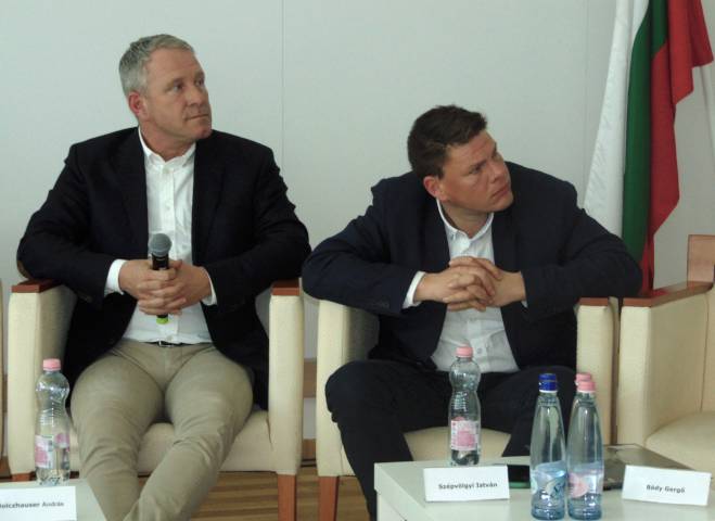 A kiállítás külföldi díszvendége Bulgária, a belföldi Gyula Város és Békés Vármegye lesz – tudtuk meg 11 órától Ferencvárosban, a Vágóhíd utcai Bolgár Művelődési Ház I. emeletén Bódy Gergő moderálásával. Megszólalóként balról jobbra Sipiczki Róbert, a Magyar Kerékpáripari és Kereskedelmi Szövetség elnöke; dr. Görgényi Ernő, a díszvendég Gyula Város polgármestere; Komoróczki Aliz, a Gyulai Turisztikai Nkft. ügyvezetője és a Békés Vármegyei Kormányhivatal szervezésért felelős munkacsoport vezetője; Genát Andrea tolmácsnő; Őexc. Hriszto Polendakov, a díszvendég Bulgária nagykövete; Tihanyi Klára, a Hungexpo stratégiai és üzletfejlesztési igazgatója; Holczhauser András, a Magyar Vitorlás Szövetség főtitkára és Szépvölgyi István a vitorlazzitthon.hu képviseletében ültek az asztaloknál, míg moderátorunk végig állta a másfél órás eseményt. Számos fotóink Egressy Rita felvételei.