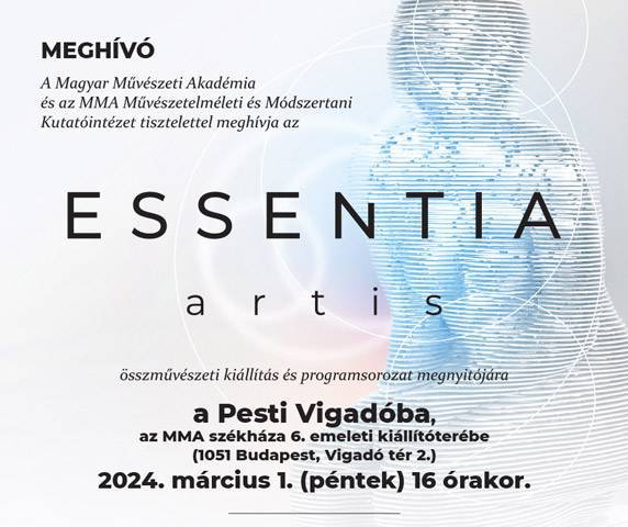 Ma 16 órakor megnyílt a Magyar Művészeti Akadémia művészeti ösztöndíjasainak kiállítása, az Essentia artis a Pesti Vigadó VI. emeleti kiállítóterében. Az ehhez kapcsolódó tematikus programsorozat március 23-án szombaton, 24-én virágvasárnap és 27-én nagyszerdán várja az érdeklődőket.