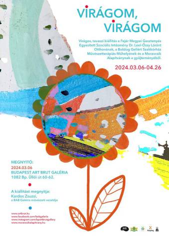 Ennek megfelelően a Budapest Art Brut Galériában az idényt egy színes és vidám kiállítással nyitottuk meg, az itt látható alkotások mindegyike életigenlést, pozitív gondolatokat és igazi tavaszi örömet sugároz – hallottuk a megnyitón. A kiállításon a Fejér Megyei Gesztenyés Egyesített Szociális Intézmény Dr. Leel-Őssy Lóránt Otthonának papírvirágait és virágos természetfotóit, a Boldog Gellért Szakkórház Művészetterápiás Műhelyének mozaik képeit, és a Moravcsik Alapítvány gyűjteményének néhány virágos darabját tekinthettük meg.