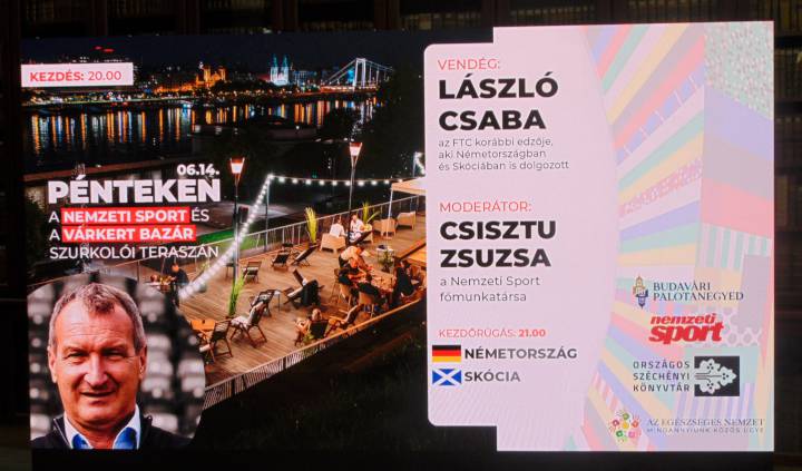 A labdarúgó-Eb ideje alatt a foci szerelmesei vehetik ismét birtokba a 10 éve megújult Várkert Bazár Öntőház udvarát, ahol ingyenesen, óriás-kivetítőn lehet majd követni az összes mérkőzést. A kialakított szurkolói teraszon nemcsak különleges hangulat, hanem csodálatos dunai panoráma is várja az érdeklődőket. A tegnap 21 órai müncheni nyitómeccsen az A-csoportban Németország-Skócia 5:1 (3:0) lett az eredmény, ma mi 15 órakor Kölnben az A-csoportban Svájccal játszunk.