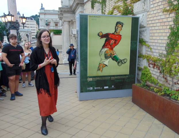 A Minden idők focija című kiállítás a labdarúgó-Eb tegnapi nyitónapján 18 órakor nyílt a Budavári Palotanegyedben. Kurátora Sulics Fruzsina, az OSZK Térkép-, Plakát- és Kisnyomtatványtárának kutatója, akivel a beszédek után tárlatvezetésre indulunk. A megnyitón és a hosszú sétán Egressy Rita fényképezett.