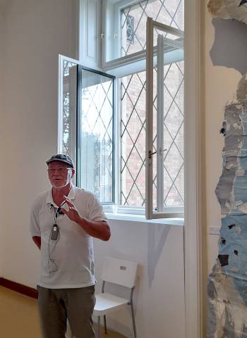 A megnyitót követő első kísérőprogramja: a művész és a kurátor nyitó tárlatvezetése ma 16 órakor kezdődött. Fotóink Katona Lucia felvételei.