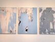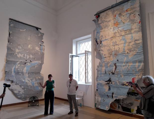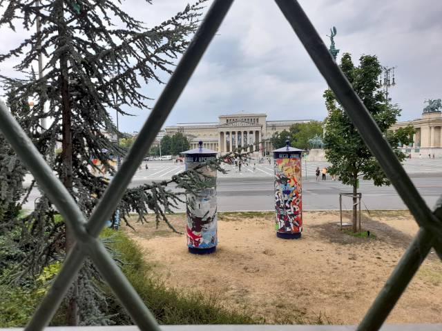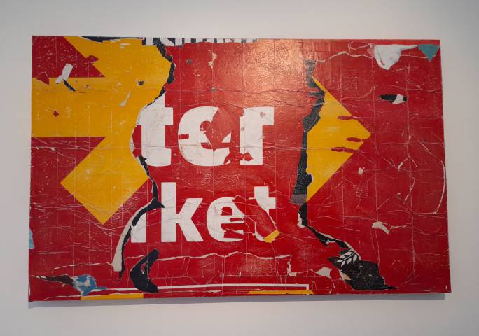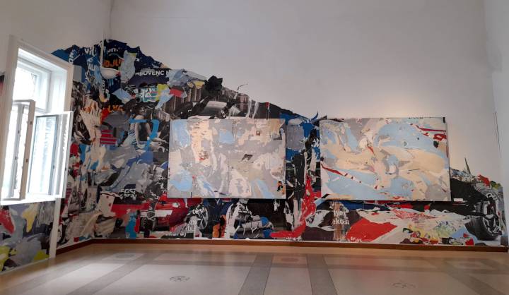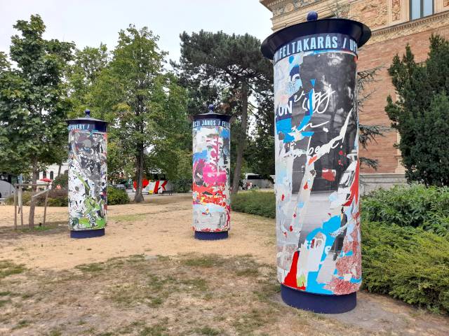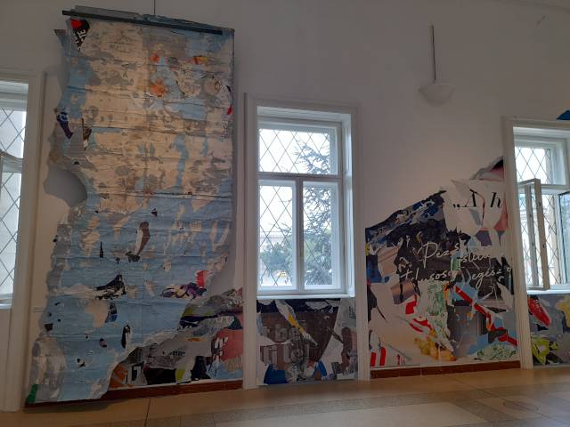 A munkákban egyszerre van jelen az eltakarás és a feltárás mozzanata. A művek köztes állapotot állandósítanak: a fosztás, roncsolás révén (akár véletlenszerűen) új jelek, mintázatok jelennek meg, amelyek új rendszerré, jelentéssé, képpé szerveződnek – mintha a szétesés és újra-szerveződés kimerevített pillanatának tanúi lennénk. A műcsarnoki kiállítás izgalmas kísérletet tesz az utca és a kiállítótér közötti távolság áthidalására: Géczi János a kiállítóterem falaira ideiglenes, helyspecifikus művet készít, amely párbeszédbe kerül a Műcsarnok homlokzata elé kerülő, szintén ideiglenes kültéri installációjával.
