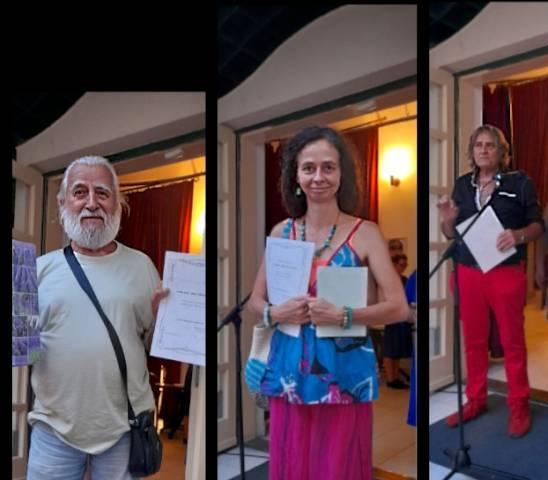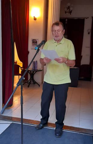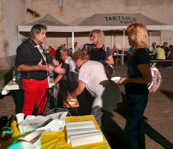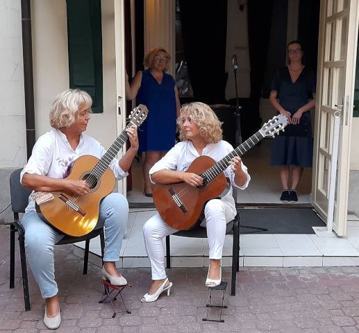 A kiállítást Revák István festőművész nyitotta meg, zenei közreműködők a Duo Violente: Solymári Tímea és Viola Éva gitárművészek voltak az Árpád út 66-ban. Török Tavadar Titi remek sertésgulyást főzött bográcsban az udvaron. Fotóink Katona Lucia felvételei.
