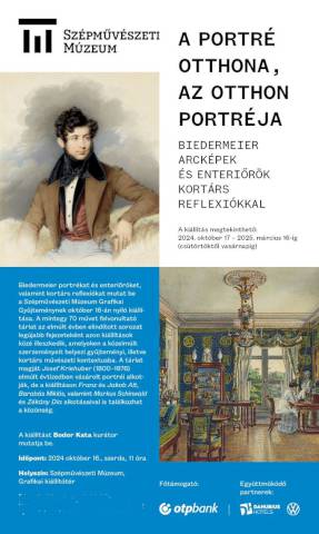 Biedermeier arcképek és enteriőrök kortárs reflexiókkal láthatók holnaptól A portrék otthona, az otthon portréja címmel a Szépművészeti Múzeum Grafikai kiállítóterében 2025. március 16-ig minden héten csütörtöktől vasárnapig az állandó kiállításokra szóló belépővel. Minden hétfőn, kedden és szerdán a tárlat zárva tart!