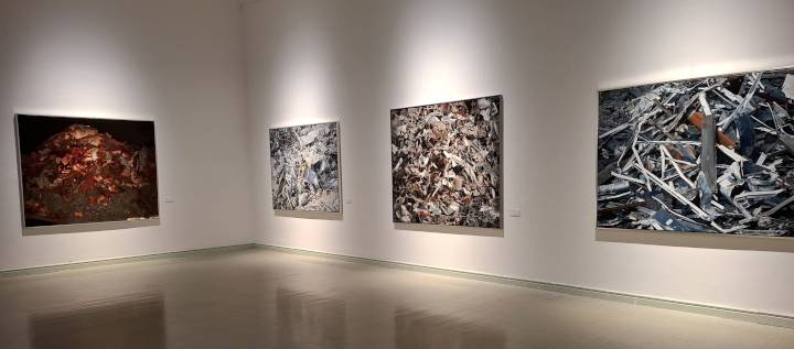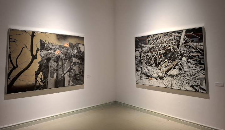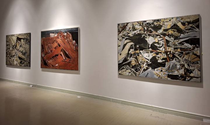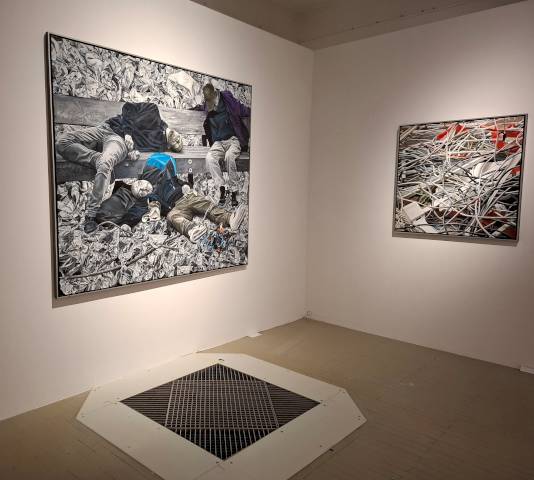 A Műcsarnok ma 11 órakor kivételesen két új tárlatán tartott fél-félórás sajtóbejárást. Jovián György (1951-): A szép rettenete című kiállításán Zuh Deodáth PhD kurátor tartott félórás tárlatvezetést, majd a művésszel közösen válaszoltak kérdéseikre. Fotóink Katona Lucia felvételei.