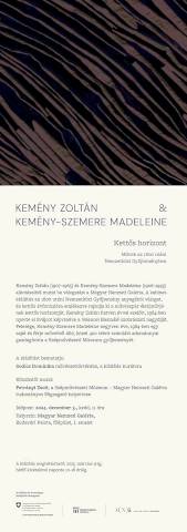 Kemény Zoltán & Kemény-Szemere Madeleine: Kettős horizont – Művek az 1800 utáni Nemzetközi Gyűjteményben című kiállítása nyílt ma 11 órakor Budavárban. Bemutatta: Sodics Dominika művészettörténész, a kiállítás kurátora. Köszöntőt mondott: Petrányi Zsolt, a Szépművészeti Múzeum – Magyar Nemzeti Galéria tudományos főigazgató-helyettese.