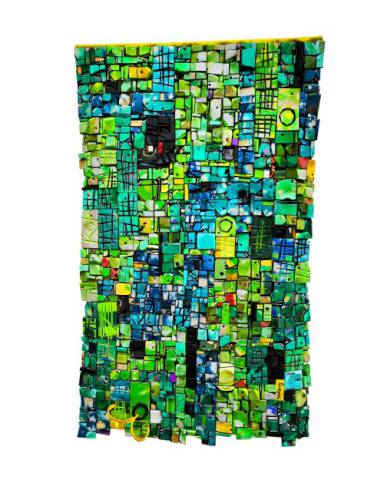 Művészi inspirációjának középpontjában a tengerpart és annak folyamatosan változó élővilága áll. A Képzőművészeti Egyetem Újraszőtt mintázatok / Rewoven Patterns kiállításán nyolc nagyméretű, installatív alkotása látható, színes fragmentumokból álló, repetitíven szerkesztett fali objektek. Az újrahasznosított flip-flop papucsokból különleges technikával létrehozott kompozíciók ugyanúgy felidézik Nyugat-Afrika vibráló textil-motívumait, mint gyermekkorunk kaleidoszkóp képeit. A hulladék metamorfózisa műalkotássá itt nem csupán egy esztétikai gesztus, hanem reflexió a globalizáció és a fenntarthatóság kérdéseire.