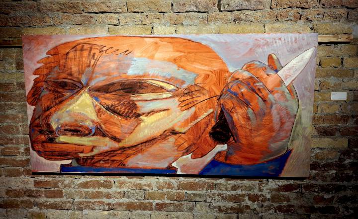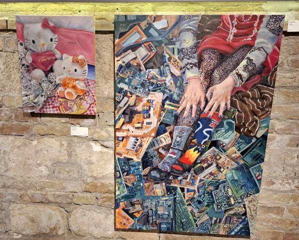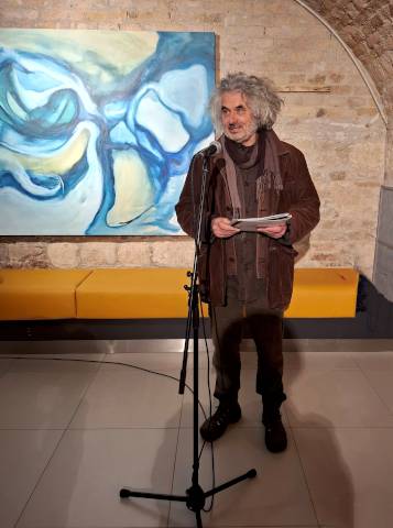A Magyar Képzőművészeti Egyetem festő, szobrász és grafikus hallgatói ismét a közönség elé tárták munkáikat a Közös többszörös újratöltve című kiállításon. Az április 13-án vasárnapig látogatható tárlatot Gaál József festőművész, egyetemi docens nyitotta meg 17 órakor az Eötvös10 Művelődési Ház Pincegalériájában. Fotóink Katona Lucia felvételei.