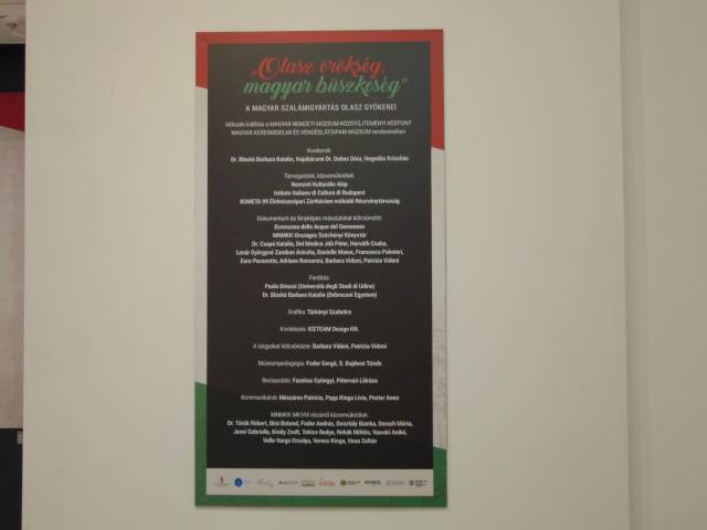 A kiállítás középpontjában a debreceni Vidoni Szalámigyár áll, melyet egy szintén Friuliból érkezett család tagjai, a Vidoni fivérek alapítottak 1886-ban. Bemutatásra kerülnek más, friuli iparosok által alapított üzemek is, mint a budapesti Del Medico, Dozzi, a szegedi Forgiarini és a debreceni Boschetti, illetve a legnagyobb nem friuli alapítású, de olaszokat is alkalmazó gyárak, mint a Pick és a Herz. Ezen felül megjelenik a kiállításban a mai Magyarország egyik legjelentősebb cége, az olasz tulajdonú KOMETA 99 Élelmiszeripari Zrt. is, mely szintén foglalkozik szalámigyártással. Tőlük Hollósy Tibor agrárfejlesztési igazgató és ügyvezető-helyettes szólalt fel a megnyitón.