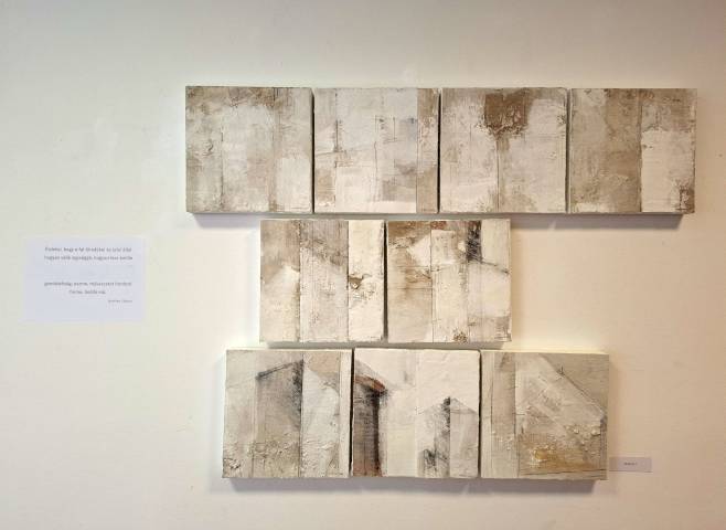 – Képeim jellegzetessége az anyagszerűség. rétegzettség, megjelenésében erős építészeti kötődéssel. Azonban nem a házra, hanem a falra és azon belül az anyagra koncentrálok. A rétegzettség segítségével falakat, álfalakat, spirituális tereket képzek. Vakolatszerűen rakom egymásra a különböző vastagságú rétegeket. Az egymásra halmozott anyagmassza területrétegeit, geometrikus és asszociatív formáit, motívumait és jeleit még többnyire nedves állapotban rakom fel, alakítom egymás mellé, egymásra, illetve egymáshoz viszonyítva.