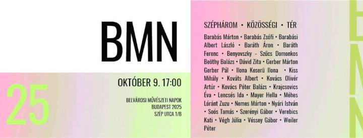 BMN Kortárs 2025 címmel V. kerületi Kortárs képzőművészek kiállítása nyílt tegnap 17 órakor a Széphárom Közösségi Térben a XV. Belvárosi Művészeti Napok nyitórendezvényeként.