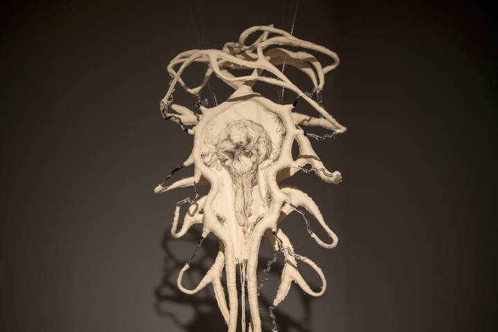 – A kiállítás azt a kortárs nyugtalanságot térképezi fel, amelyben a valóságérzékelésünk megbillen, és a rejtett, láthatatlan erők érzékeltetése válik meghatározóvá. Az ismeretlennel való szembenézés itt nem félelmet, hanem egyfajta különös nyugalmat hív elő – annak felismerését, hogy az ismeretlenbe való alámerülés egy teljesen új érzékelés és tapasztalás lehetőségét hordozza – emelte ki Máté Zsófia, a kiállítás társkurátora a 11 órai sajtóbejáráson.