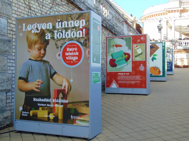 A Várkapitányság és az MNMKK – Magyar Kereskedelmi és Vendéglátóipari Múzeum együttműködésében valósult meg a Legyen ünnep a Földön! – Retró teleink világa című szabadtéri kiállítás az I. kerületi Ybl Miklós tér 2-4-ben, a Várkert Bazár Glorietthez vezető rámpáján. Fotóink Egressy Rita felvételei.