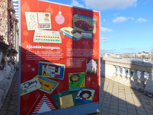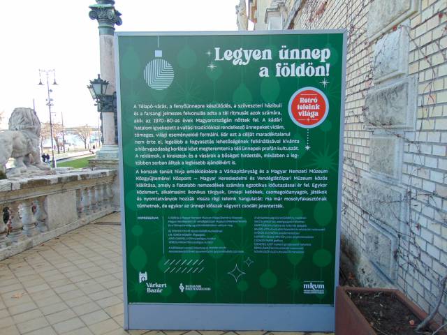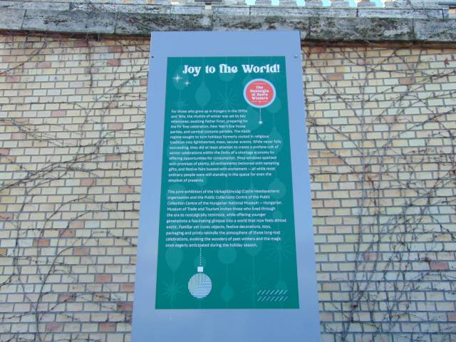 A retró hangulatú szabadtéri kiállítás az 1970-80-as évek Magyarországának téli ünnepeit idézi meg. A Télapó-várás, a fenyőünnep, a szilveszteri házibulik és a farsangi felvonulások világa elevenedik meg korabeli plakátok, képeslapok, árucédulák és ikonikus tárgyak fotóinak segítségével abból a korszakból, amikor a kádári hatalom igyekezett a vallási tradíciókkal rendelkező ünnepköröket vidám, tömeges, világi eseményekké formálni.