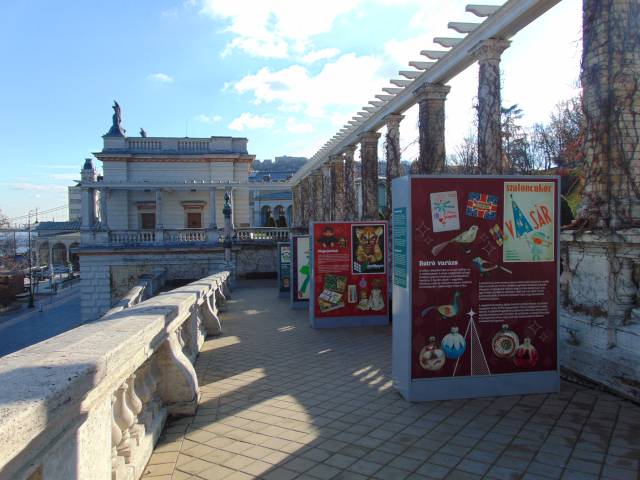 Bár ezt a célját nem érte el, legalább a fogyasztás lehetőségének felkínálásával igyekezett a hiánygazdaság korlátai közt megteremteni az ünneplés profán kultuszát – hallottuk a tárlatvezetésen, majd felsétáltunk a Halászó gyerekek teraszán kialakított adventi vásárhoz, ahol az édes és sós süteményeket forró teával és forralt borral öblíthették le a fáradt sajtómunkások.