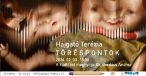 Hajgató Terézia: Töréspontok című kiállítása nyílik február 03-án kedden 18 órakor a ferendvárosi 2B Galériában – tudatta Böröcz László galériavezető. A február 16-án csütörtökig látható tárlatot dr. Bordács Andrea nyitja meg a Ráday utca 47-ben.