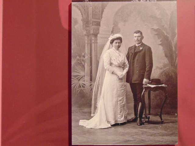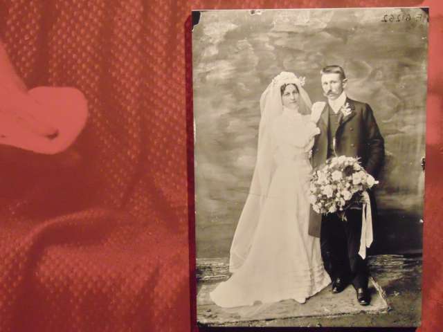 A legromantikusabb kép: számos esküvői fotó közül Maár Róza felvétele, melyen a menyasszony érzelmesen vőlegénye vállára támaszkodik (NM F 61262)